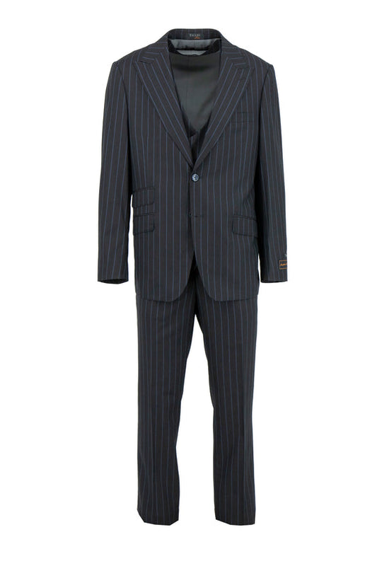 Tiglio Luxe Black With Blue Pinstripe Prosecco, Modern Fit Pure Wool Suit & Vest TL4043