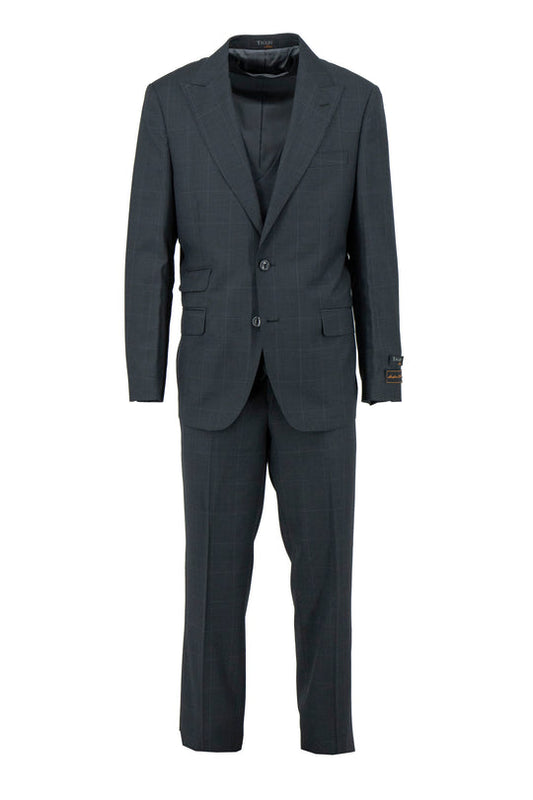 Tiglio Luxe Black With Blue Windowpane Santorini, Slim Fit Pure Wool Men’s Suit TL5103