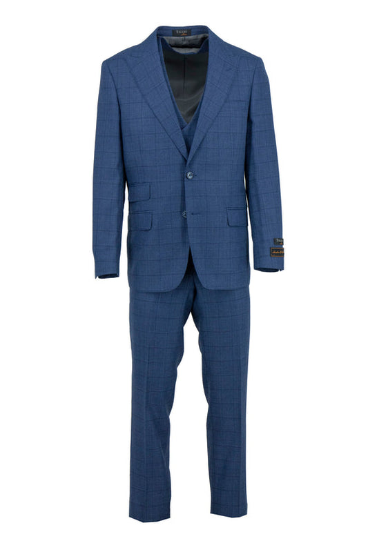Tiglio Luxe Blue Mini Check with Windowpane Prosecco, Modern Fit Pure Wool Suit & Vest TL4249