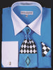 Daniel Ellissa Stripe Pattern French Cuff Dress Shirt DS3787P2 Blue