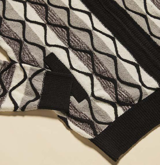 Inserch Geometric Full Zip Sweater SW908-00001 Black