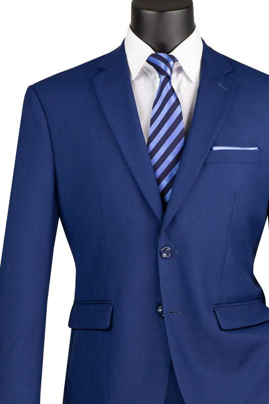 Regular Fit 2 Piece 2 Button Textured Weave Suit (Blue) 2LK-1