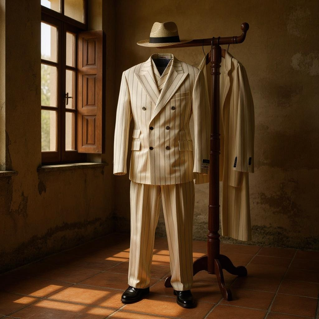 Tiglio Rosso "New Rosso" Off White Wide Leg Pure Wool Suit & Vest TL2622 (IN STORE)