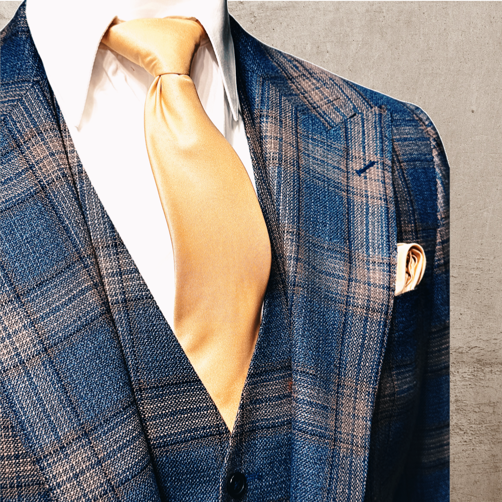 Tiglio Luxe Prosecco Modern Fit Suit/Vest Blue/Rust Plaid TL8101 (56L ONLY)