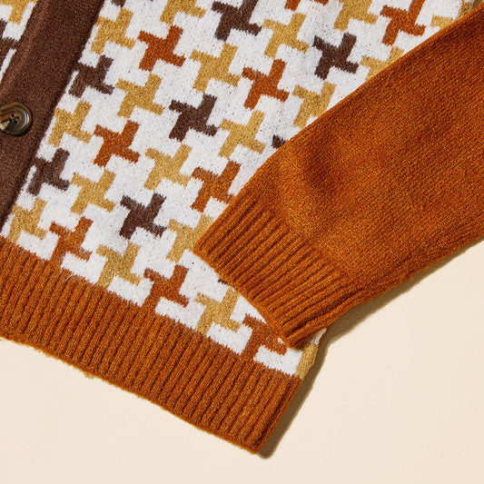 Inserch Houndstooth Pattern Cardigan SW906-05 Caramel