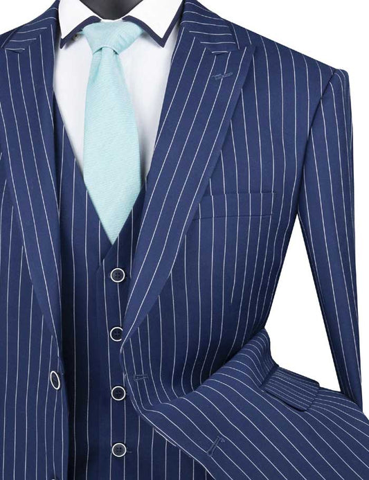 Regular Fit 3 Piece Suit 2 Button Gangster Stripe (Blue) V2RS-9