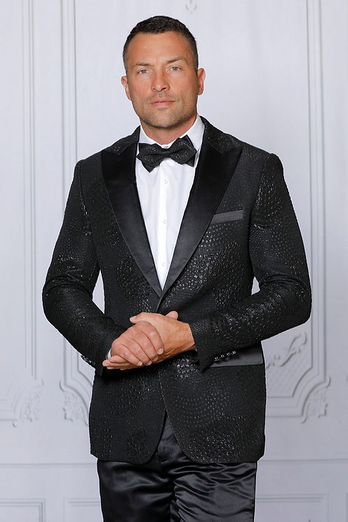MANZINI MZS-528 Reptile Texture Tuxedo Black Jacket