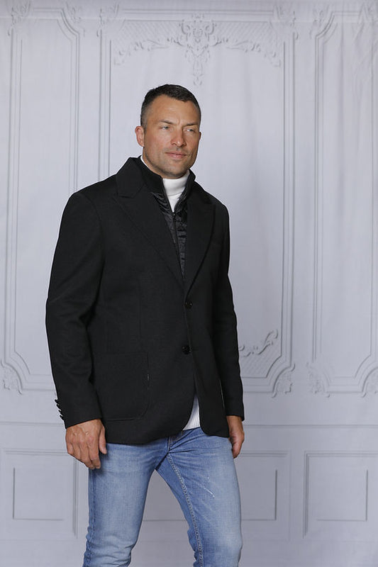 MANZINI SWITZERLAND Black Blazer Coat w/ Zip-out Liner