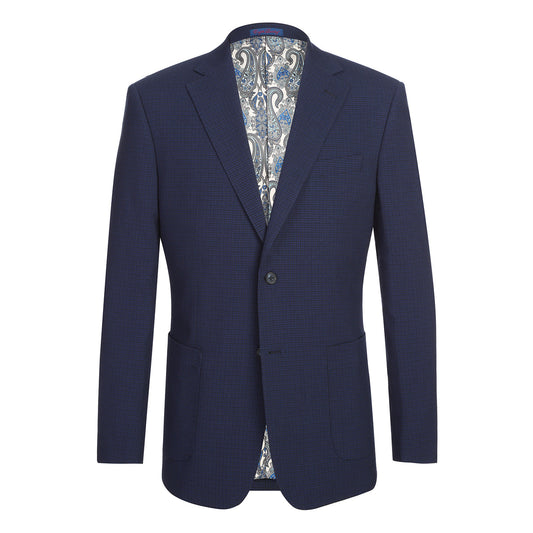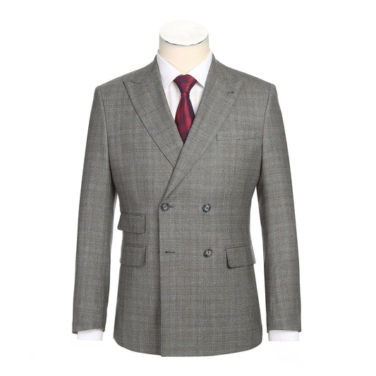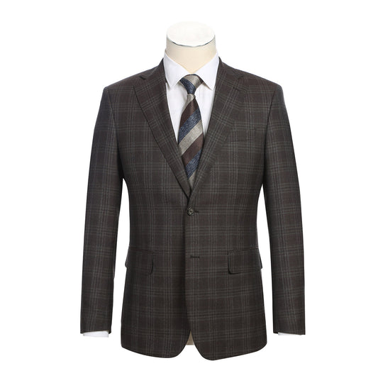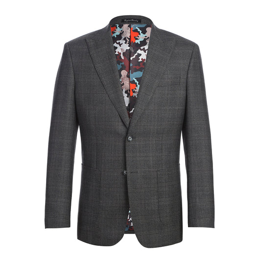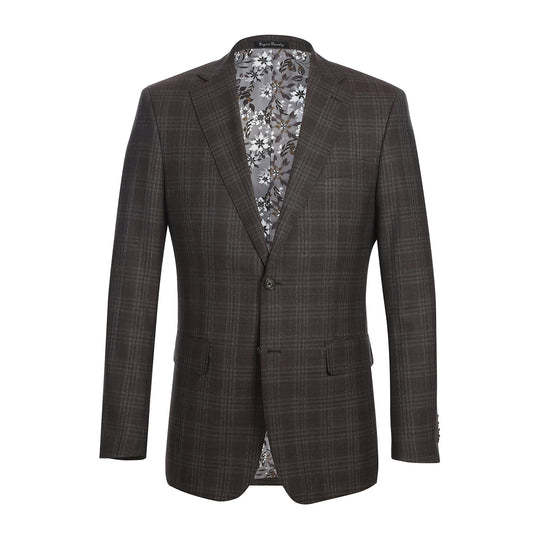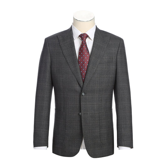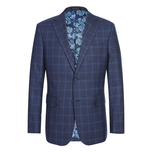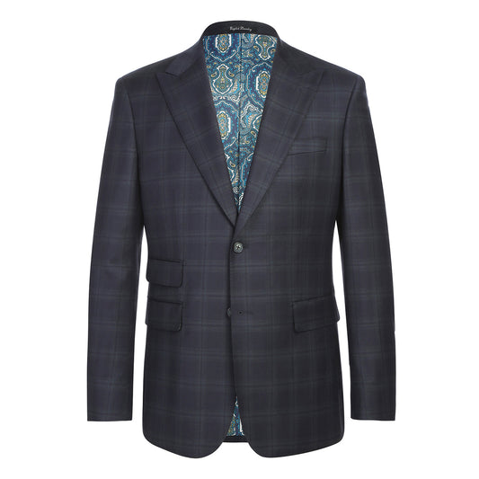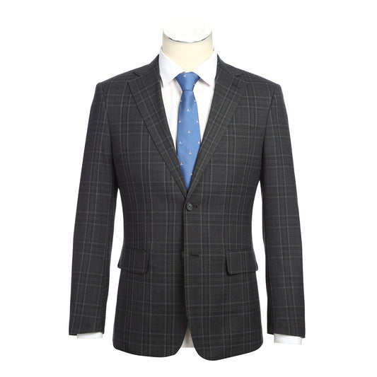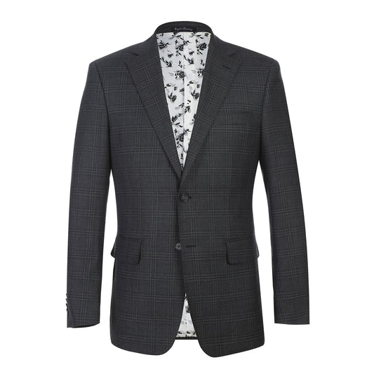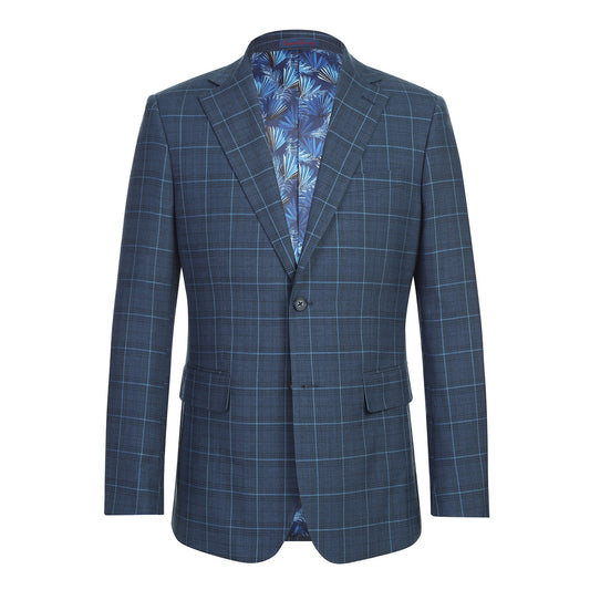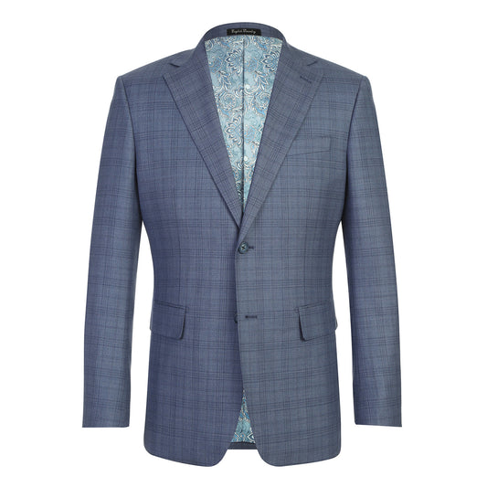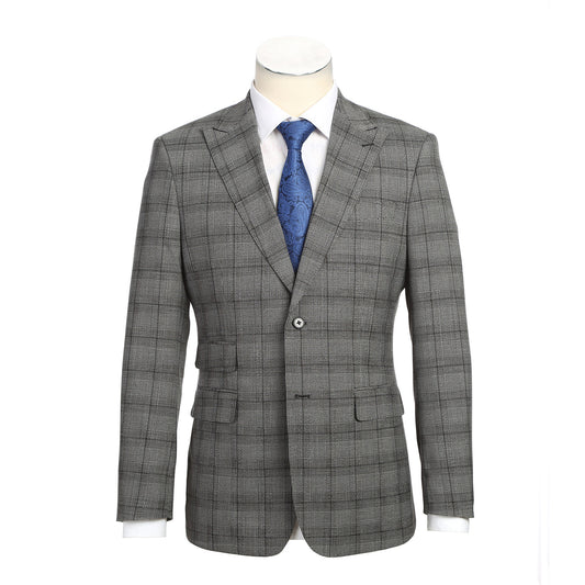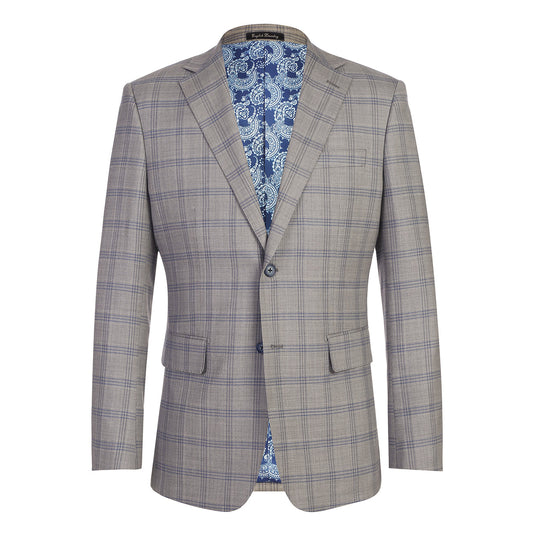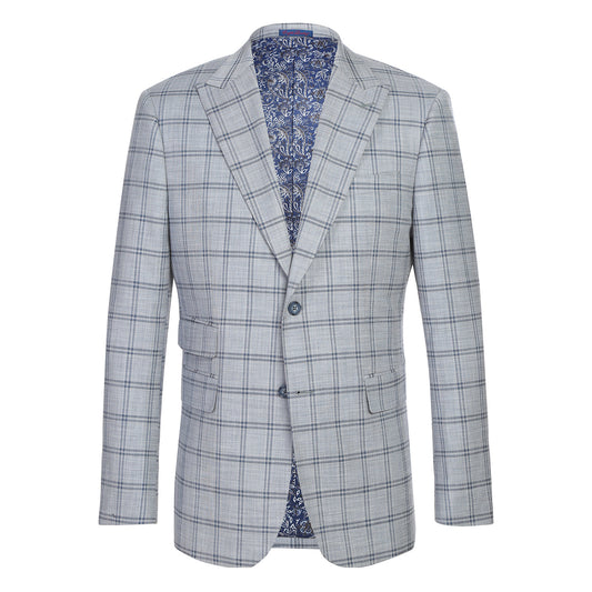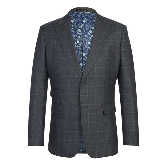 Tiglio Luxe Prosecco Grey Plaid Blue Windowpane Modern Fit TL6373 (IN STORE)