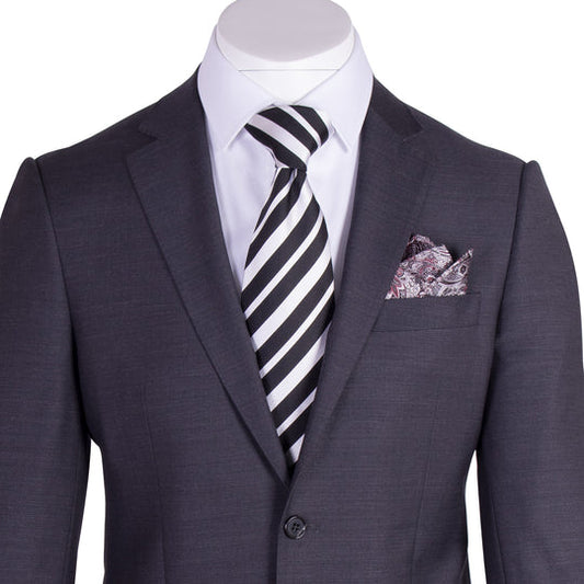 Tiglio Luxe Black with Gray Design Santorini, Slim Fit Pure Wool Men’s Suit TL3178