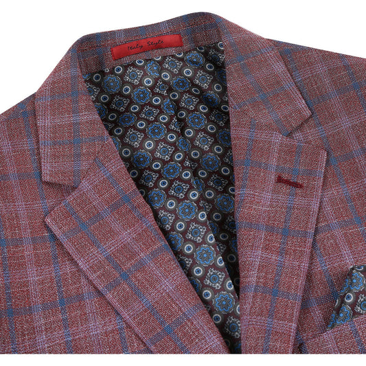 Alessandro Vitello by Renoir Burgundy Classic Fit Notch Lapels Check Blazer 294-12
