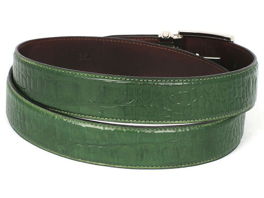 Paul Parkman Crocodile Embossed Calfskin Leather Belt Hand-Painted Green - B02-GRN