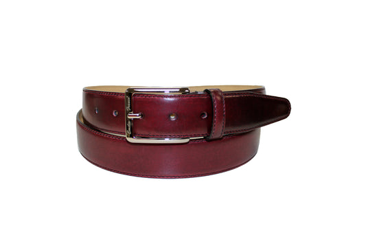 Paul Parkman Men's Handmade Leather Belt Hand-Painted Bordeaux B01-A