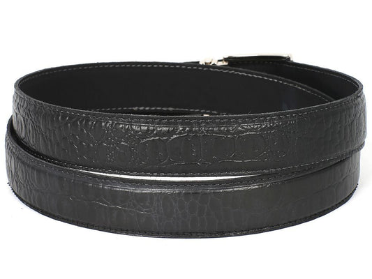 Paul Parkman Men's Crocodile Textured Leather Belt Black B02