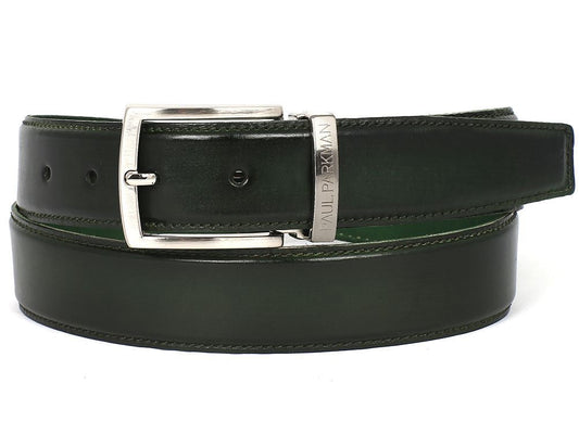 Paul Parkman Men's Handmade Leather Belt Hand-Painted Dark Green B01-A