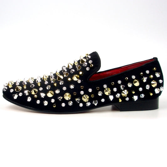 FI-7436 Black Suede Silver/Gold Spikes Fiesso by Aurelio Garcia
