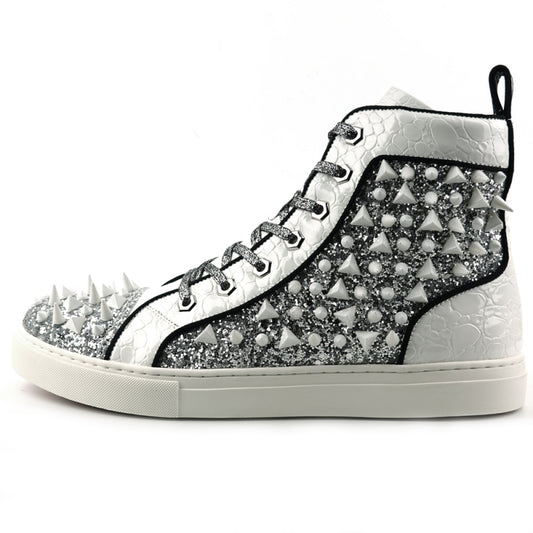 FI-2369 White Spikes High Top Sneakers by Fiesso