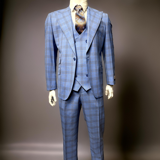 Tiglio Luxe Prosecco Modern Fit Suit/Vest Blue Plaid TL5587