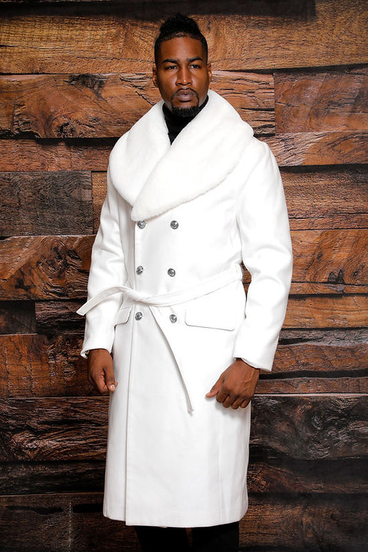 MANZINI MZW-322 White 3/4 Faux Fur Collar Double Breast Winter Coat