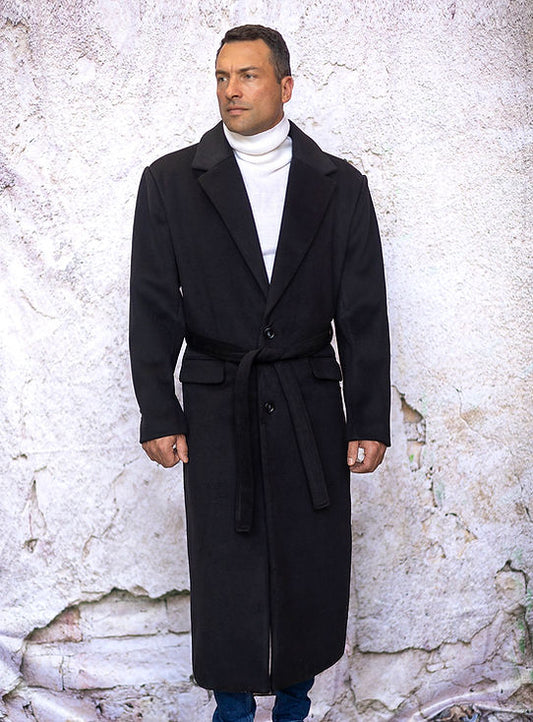 MANZINI MZW-500 Black Full Length Soft Fabric Trench Coat