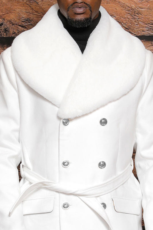 MANZINI MZW-322 White 3/4 Faux Fur Collar Double Breast Winter Coat