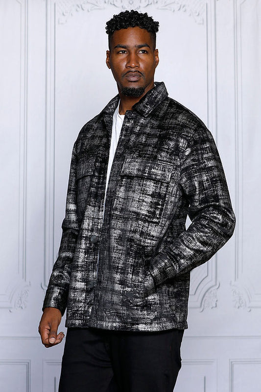 MANZINI GREECE Silver Metallic Fabric Button Down Coat