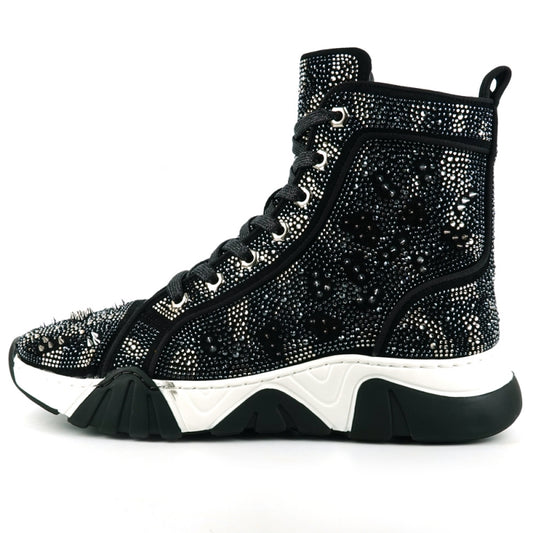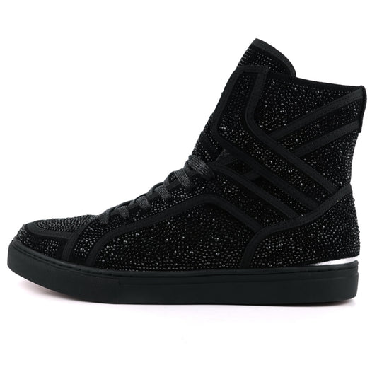 FI-2402 Black Gold Rhinestones High Top Sneakers