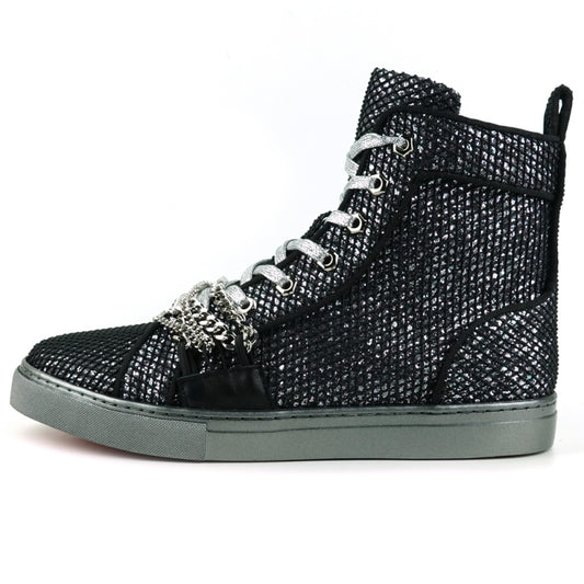 FI-2410 Black Silver Chain High Top Sneaker Encore by Fiesso