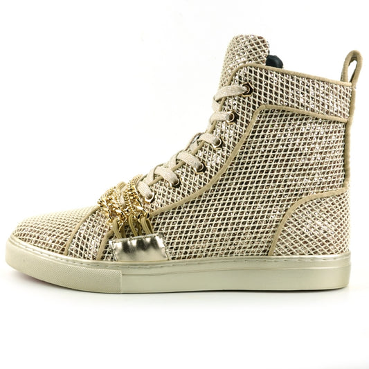 FI-2410 White Gold Chain High Top Sneaker Encore by Fiesso