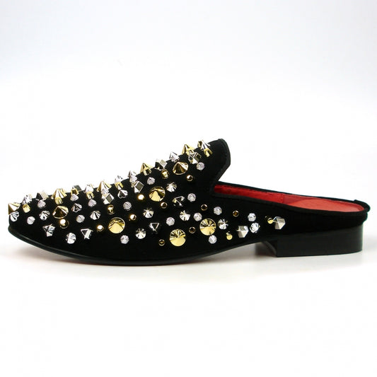 FI-7418 Black Suede Gold/Silver Studs Sandal Fiesso by Aurelio Garcia