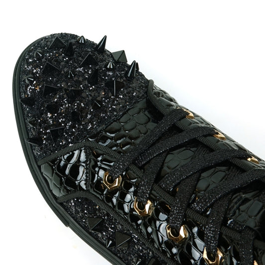 FI-2429 Black Glitter Gold Spikes Low Cut Sneaker Encore by Fiesso