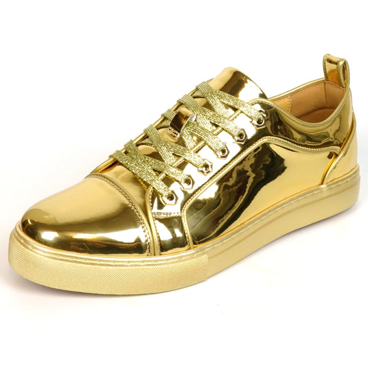 FI-2415-2 Gold Patent Lace up Low Cut Leather Sneaker