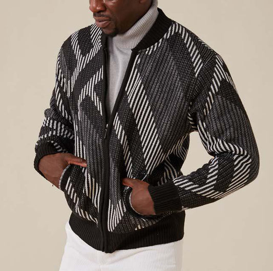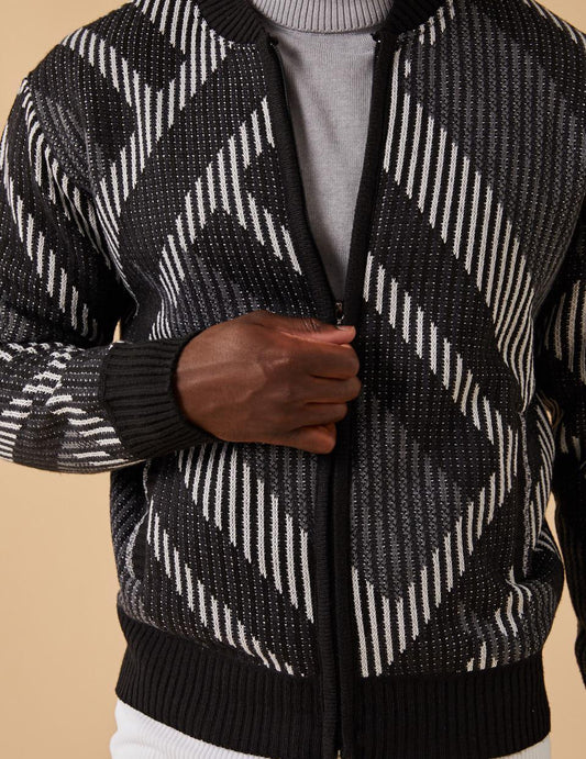 Inserch Geometric Full Zip Sweater SW908-00001 Black