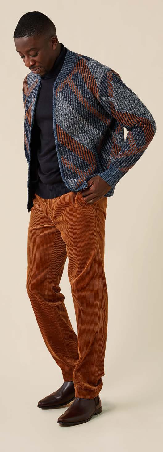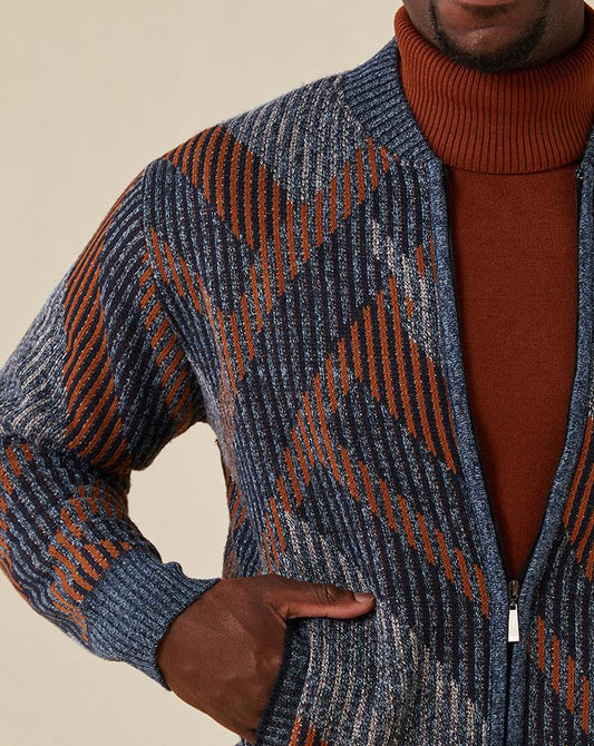 Inserch Geometric Full Zip Sweater SW908-00005 Caramel