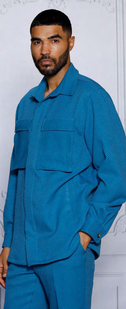 INSOMNIA ROMEO 2PC Vegan PU Suede Casual Jacket & Pants Navy Set
