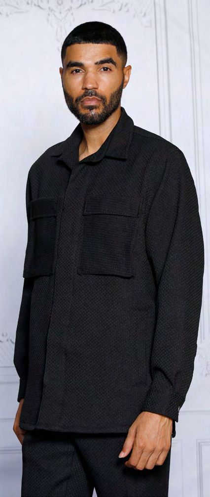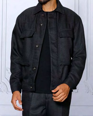 INSOMNIA CHIVAS 2PC Stamped Concrete PU Casual Jacket & Pants Black Set