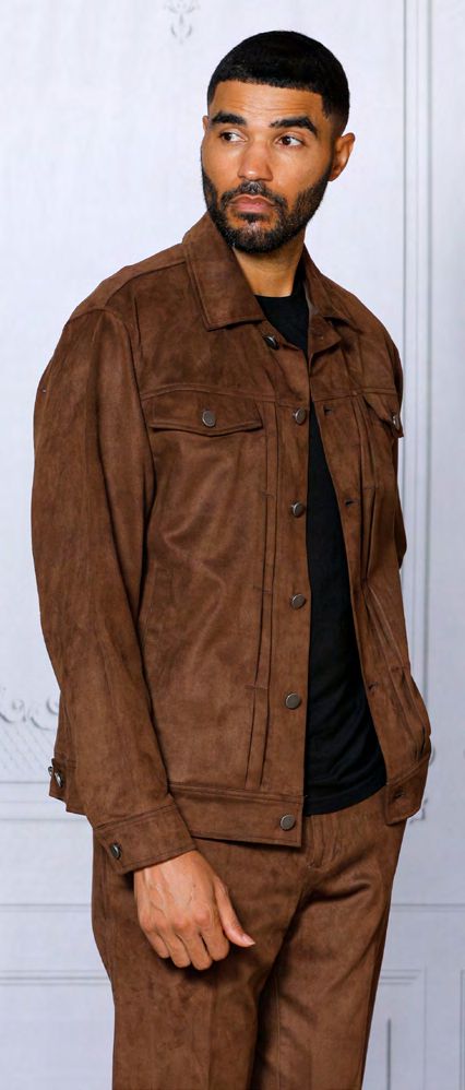 INSOMNIA ROMEO 2PC Brown Vegan Suede Leisure Suit