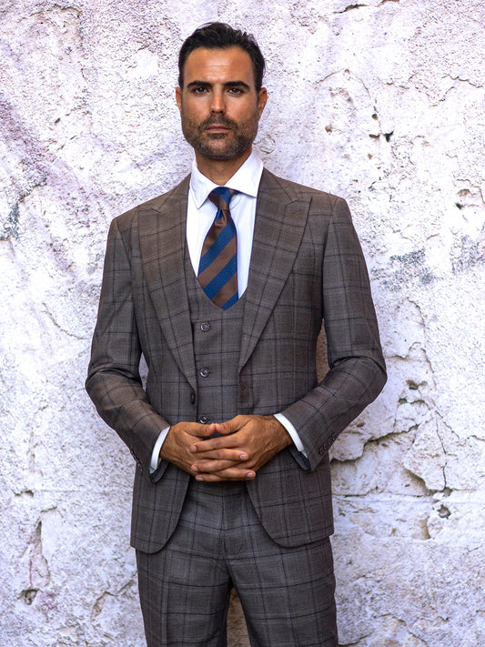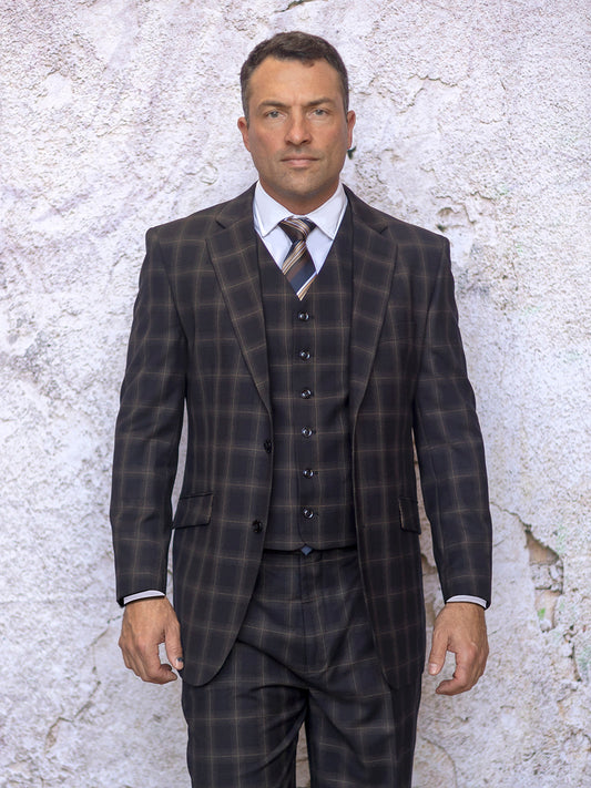 MANZINI ROME Slim Fit 3-Piece Stretch Spandex Tan Tuxedo Suit