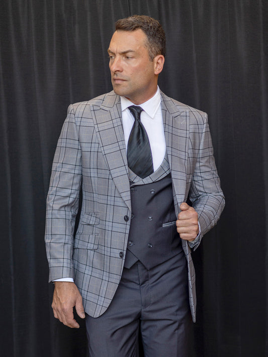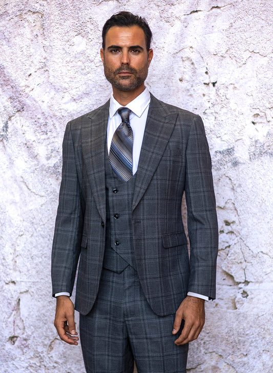 MANZINI ROME 3-Piece Slim Fit Stretch Spandex Grey Tuxedo Suit