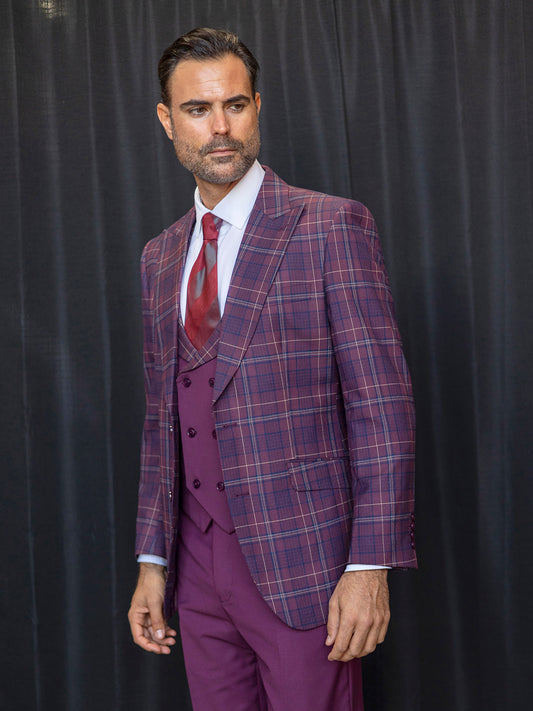 MANZINI ROME Slim Fit 3-Piece Stretch Spandex Purple Tuxedo Suit