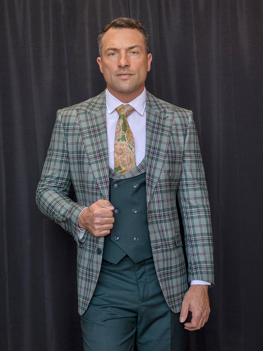 MANZINI ROME Slim Fit 3-Piece Stretch Spandex Apple Green Tuxedo Suit