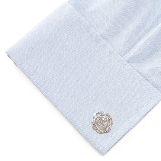 Sterling Silver Rhodium Plated Rose Cufflinks