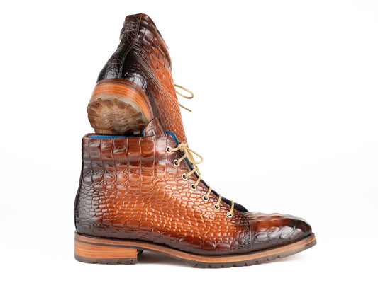 Paul Parkman Men's Brown Croco Embossed Leather Boots - 12811-BRW