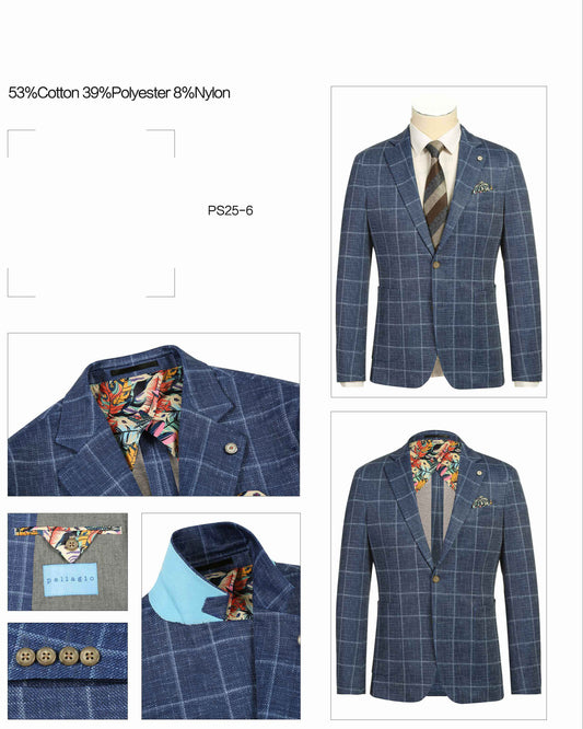 Pellagio Men's Half Canvas Blazer Gray Blue PF24-1