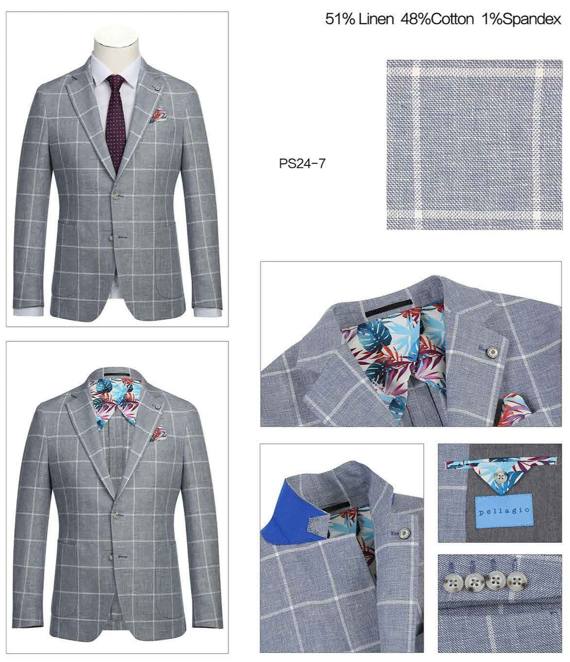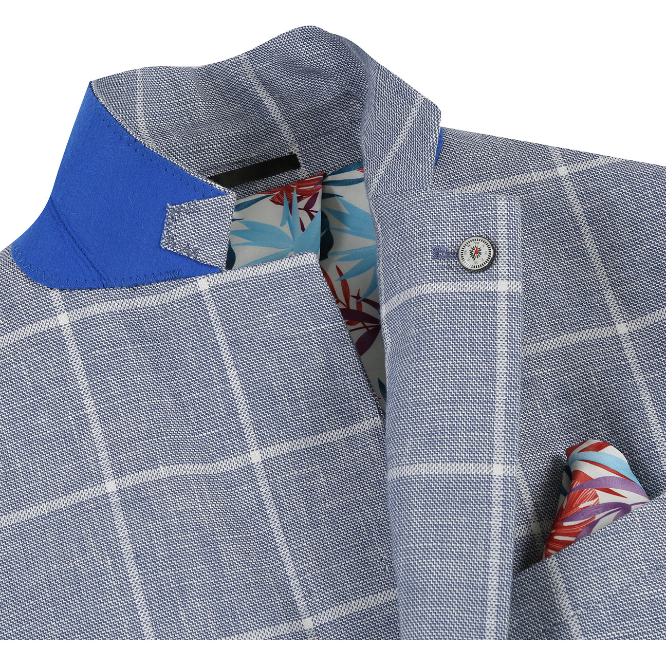 Pellagio Blue White Men's Half Canvas Blazer PS24-7