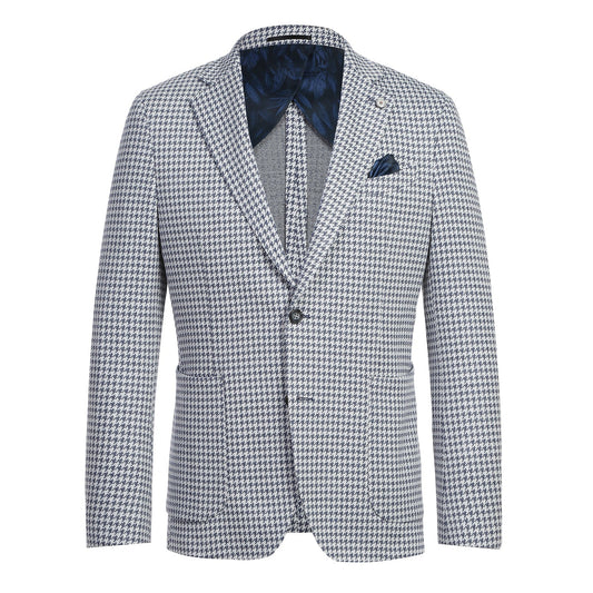 Pellagio Blue Houndstooth Men's Half Canvas Blazer PS23-5