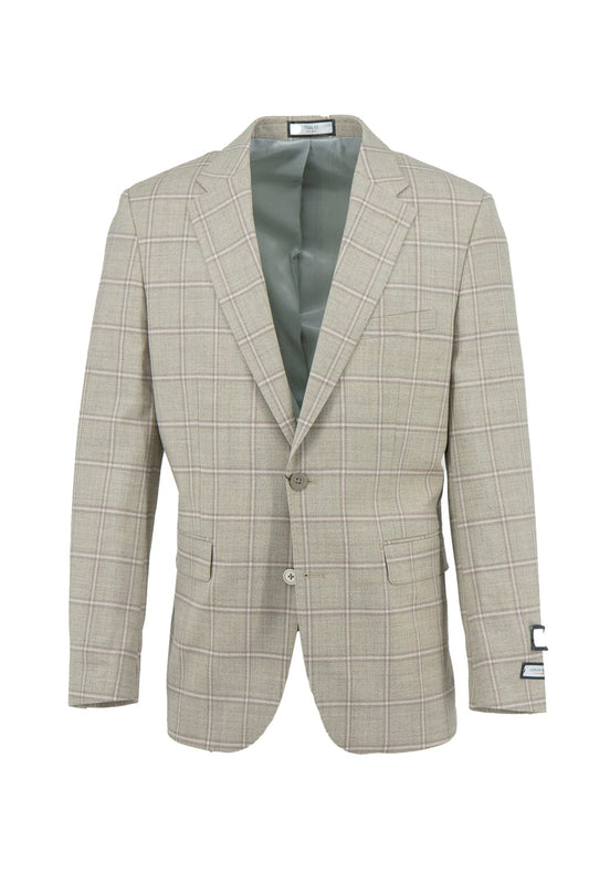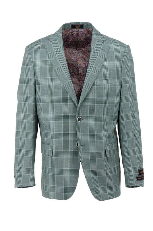Tiglio Luxe Sage Green with Cream Windowpane Porto Slim Fit Pure Wool Blazer TL8073