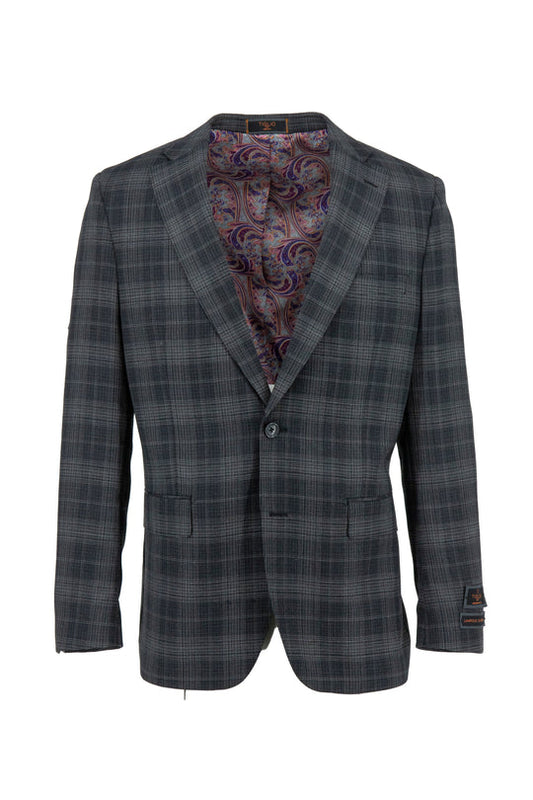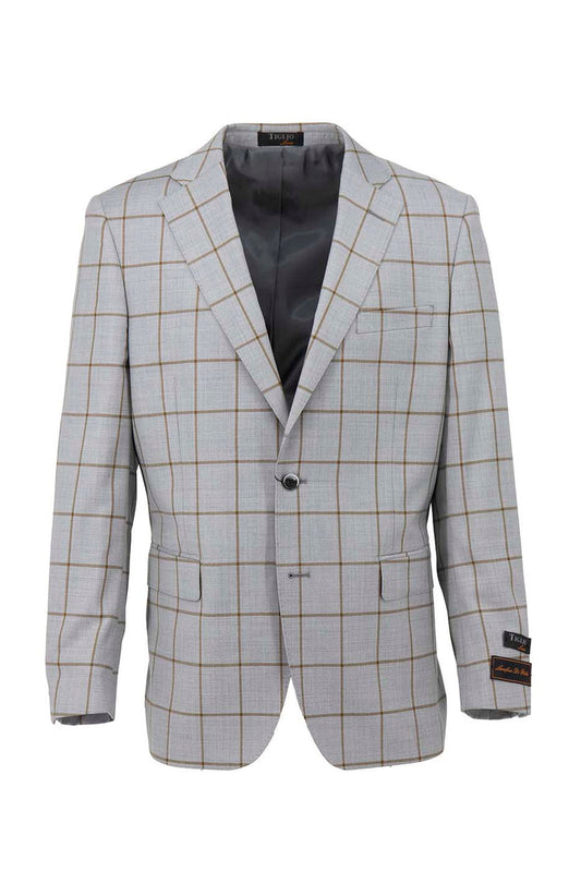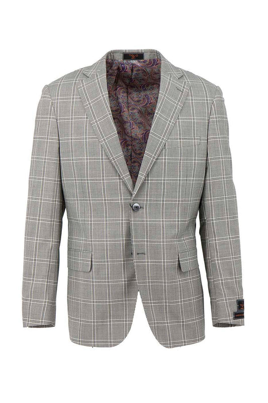 Tiglio Luxe Gray with Light Gray Windowpane Dolcetto Modern Fit, Pure Wool Jacket TL8309