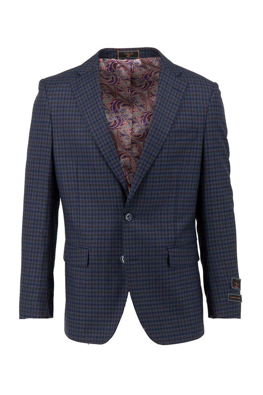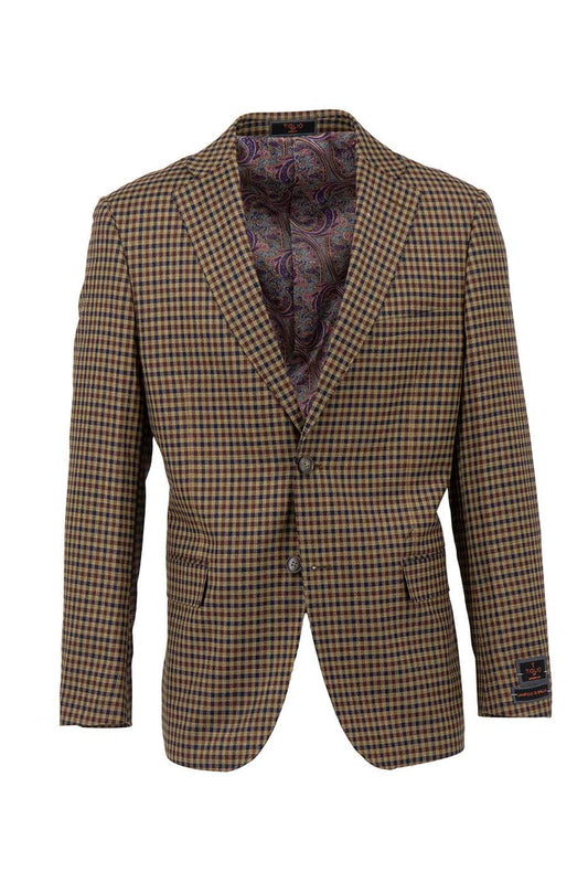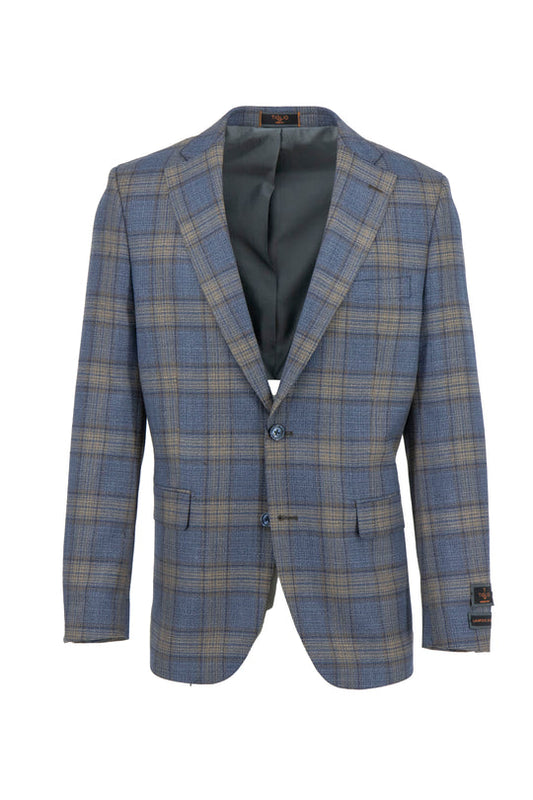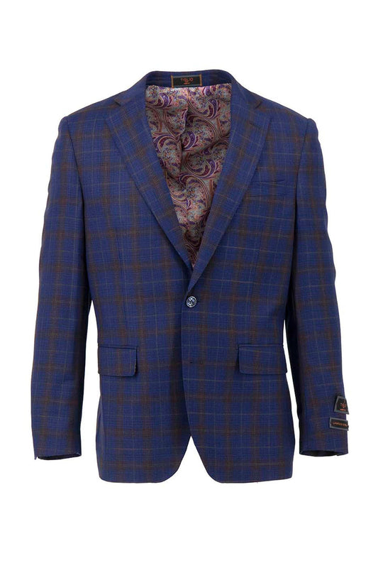 Tiglio Luxe Aegean Blue with Camel Windowpane Dolcetto Modern Fit, Pure Wool Jacket TL7517