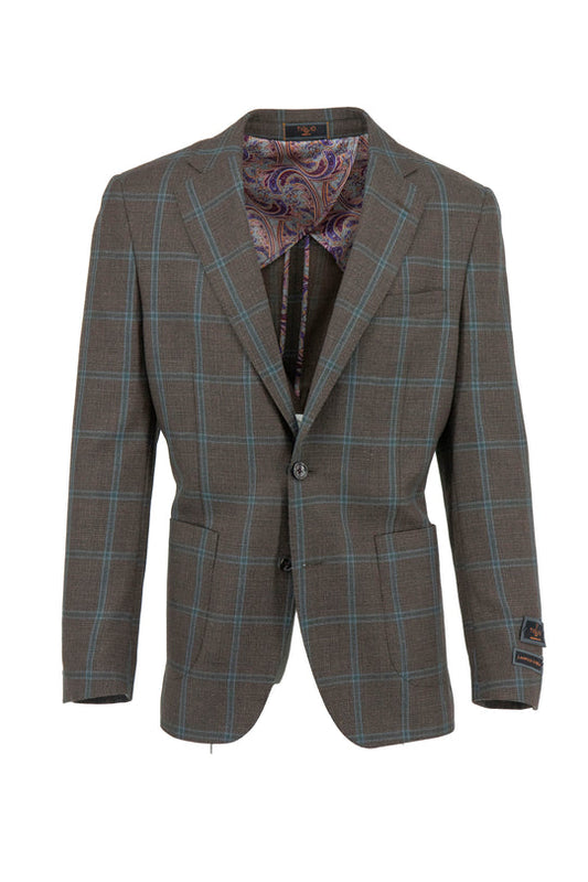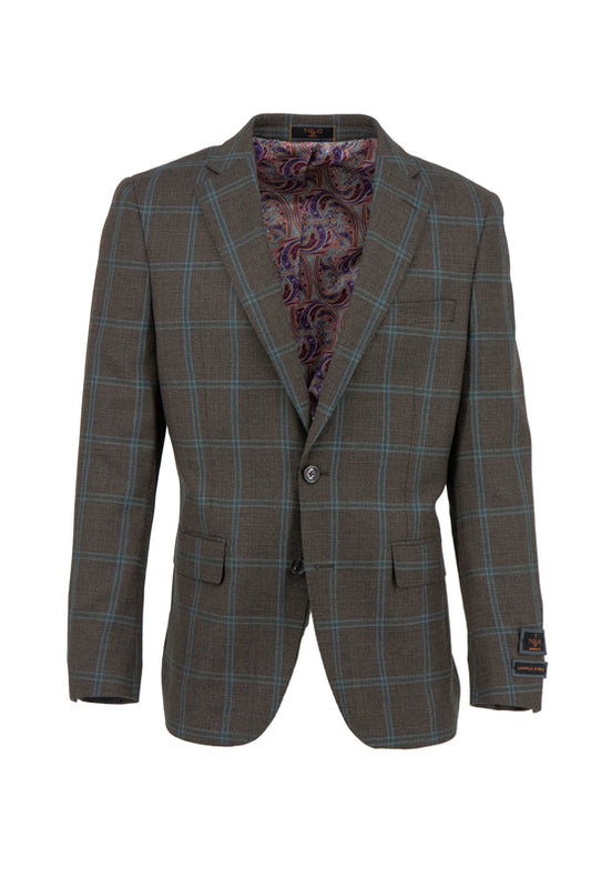 Tiglio Luxe Brown with Green Blue Windowpane Dolcetto Modern Fit, Pure Wool Jacket TL7520